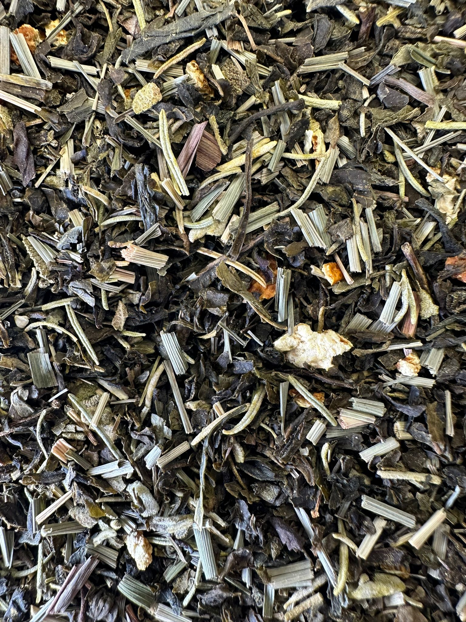 Ingredients: Green Tea, Lemongrass, Tangerine pieces, Rosemary + Sage leaves, Natural flavors (organic compliant).